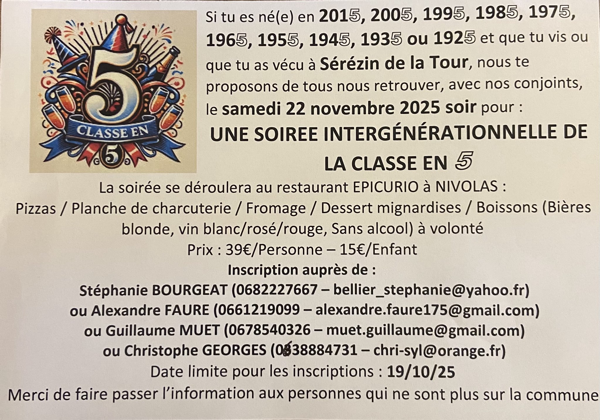 Vous n’êtes pas dispo pour déguster vos pizzas le vendredi 17 octobre ?